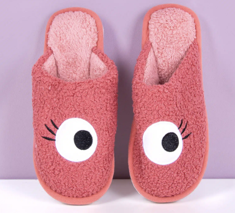 Deze Roze sloffen met ogen van Fisura zijn sloffen die je voeten lekker warm houden en komen in een handige nettas zodat je ze overal mee naartoe kunt nemen.