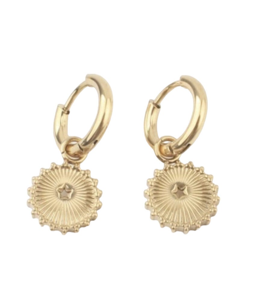 Ken je dat, een blije oorbel? Dit zijn ze! Door de ronde bedel met gekartelde rand doen deze oorbellen denken aan een stralende zon. Een vrolijk sieraad dat meteen een warme en speelse uitstraling geeft. In het midden is een opening in de vorm van een kleine ster.