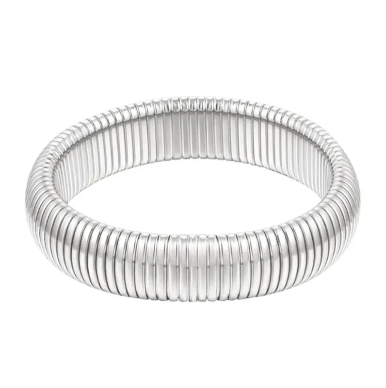 De Statement Ribbel armband is een echte blikvanger. De uitgesproken ribbelstructuur geeft het ontwerp diepte en karakter, terwijl het stevige design zorgt voor een krachtige uitstraling.